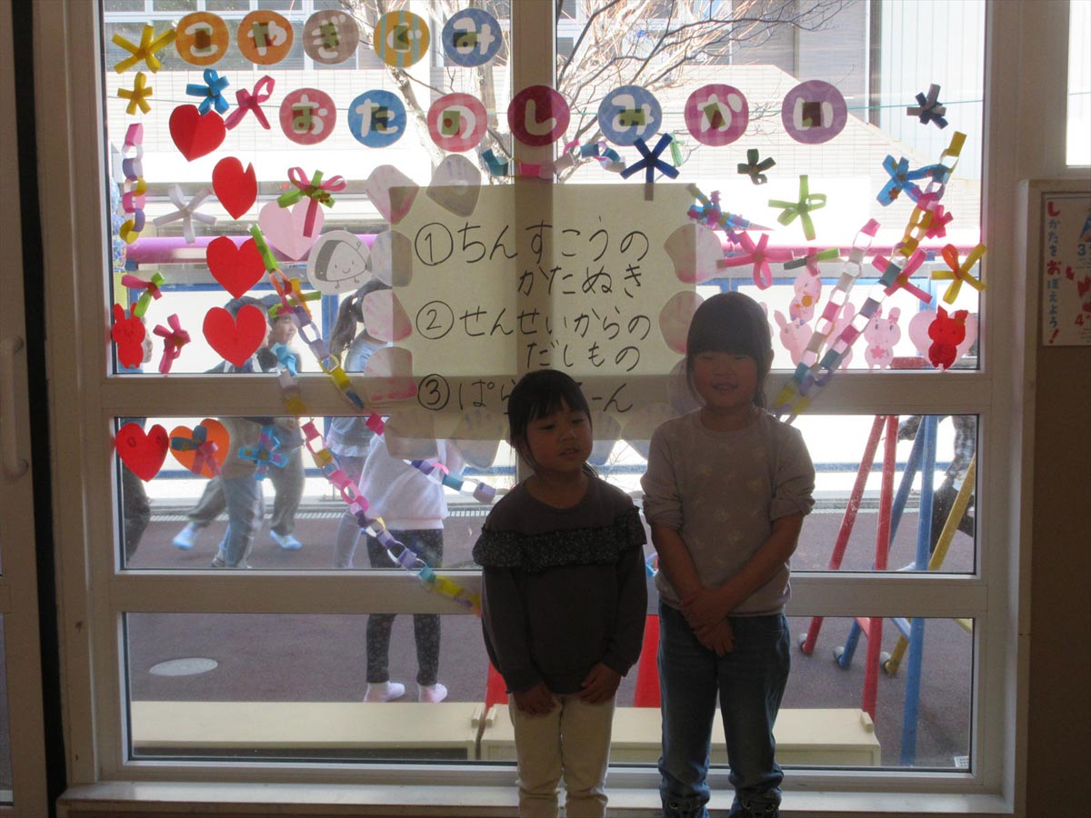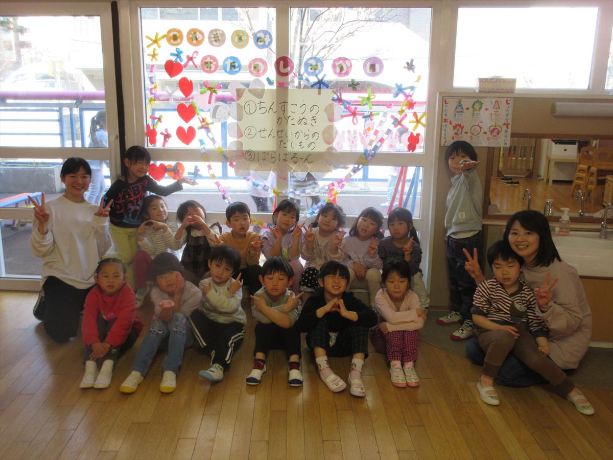 こやぎ組クラスとして過ごす日々も後わずか…。ということで、1年間で楽しかった事を振り返り、もう一度やりたいことをみんなで話合ってお楽しみ会の内容を決めました。