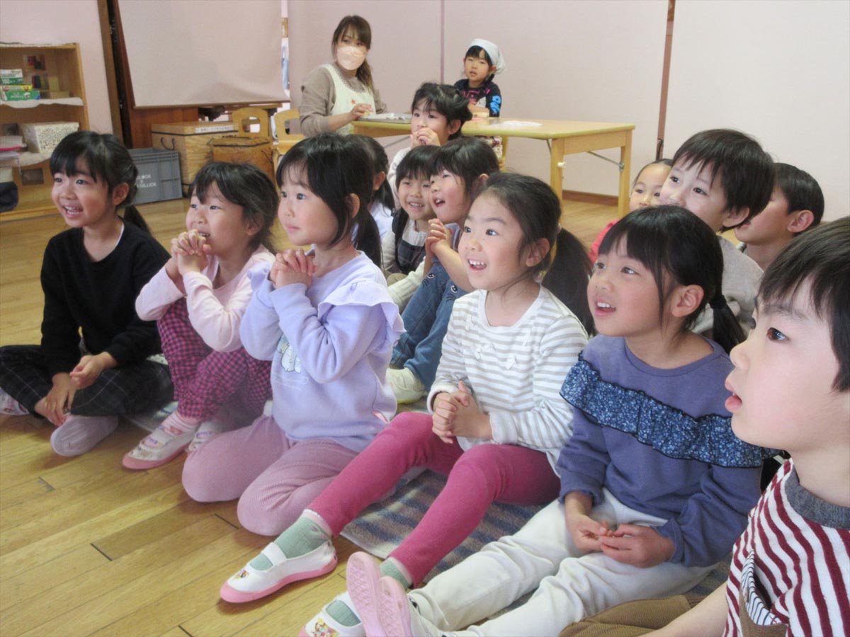 マジックショーと影絵クイズで盛り上がりました。不思議なマジックにみんなの目はキラキラ❣