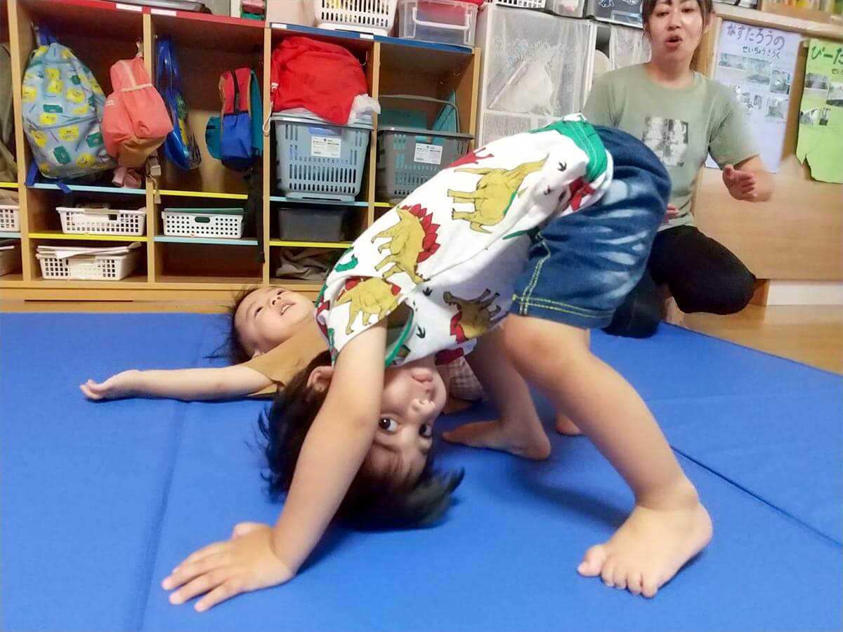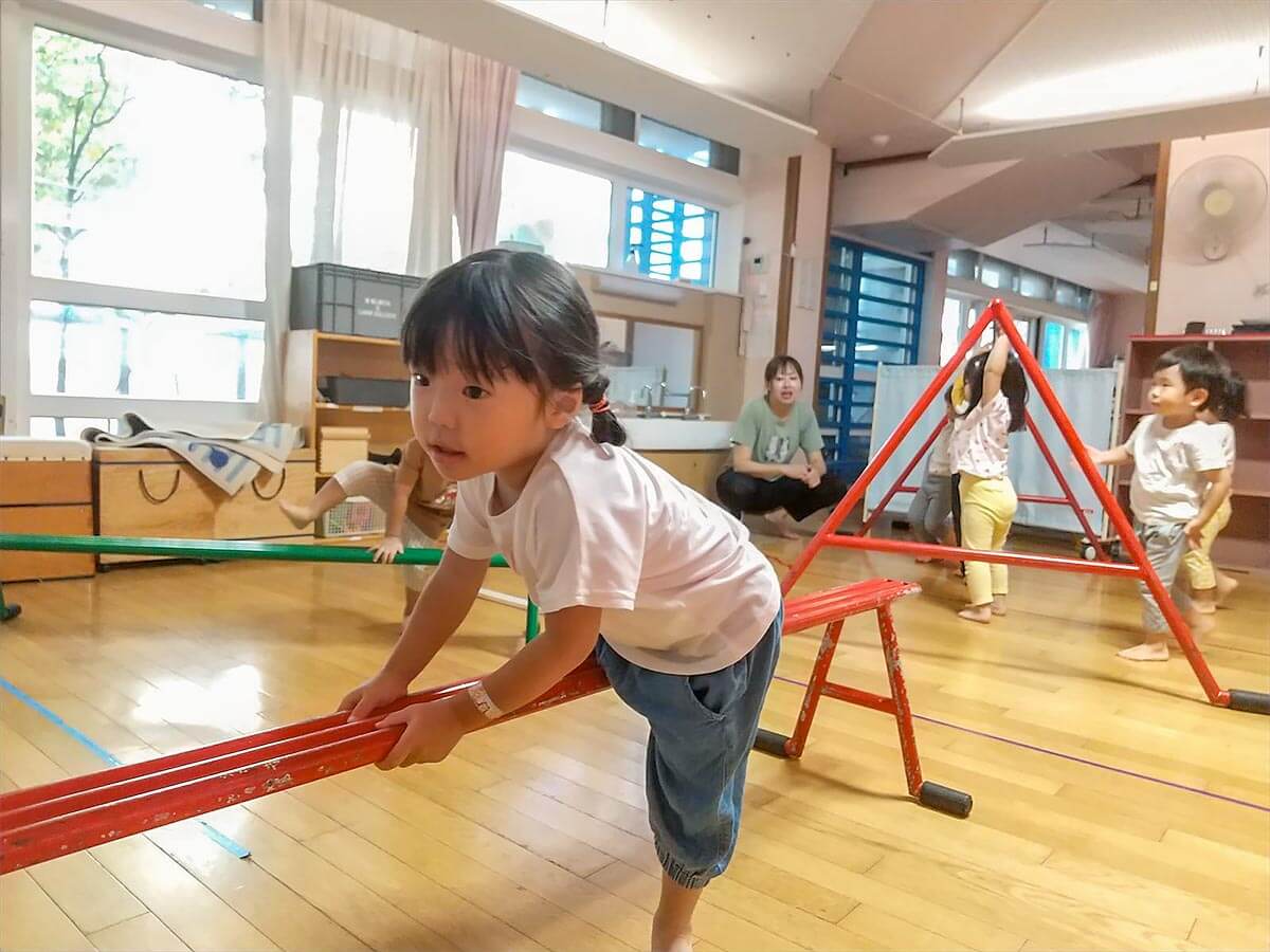 上手に平均台をまたぐことも出来る様になりました。マットでのくまさん歩きも得意です!