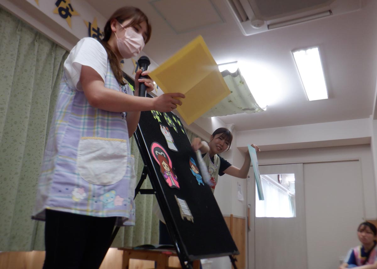 5日に七夕会を行い、パネルシアターで織姫や彦星のお話を聞いたり、うたを歌い楽しみました🎋