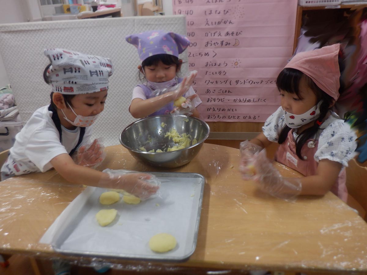 12日(金)、こぐま組みんなが待ちに待ったお泊り保育でした!前日からワクワク・ドキドキな子ども達💕自分のお泊りセットを嬉しそうに見せてくれました。スケジュール表を見ながら、「〇時になったら、お買い物にお出かけだね(^^♪)」「次はクッキングだよ🎵」と待ちきれない様子の子ども達でした(*’▽’)