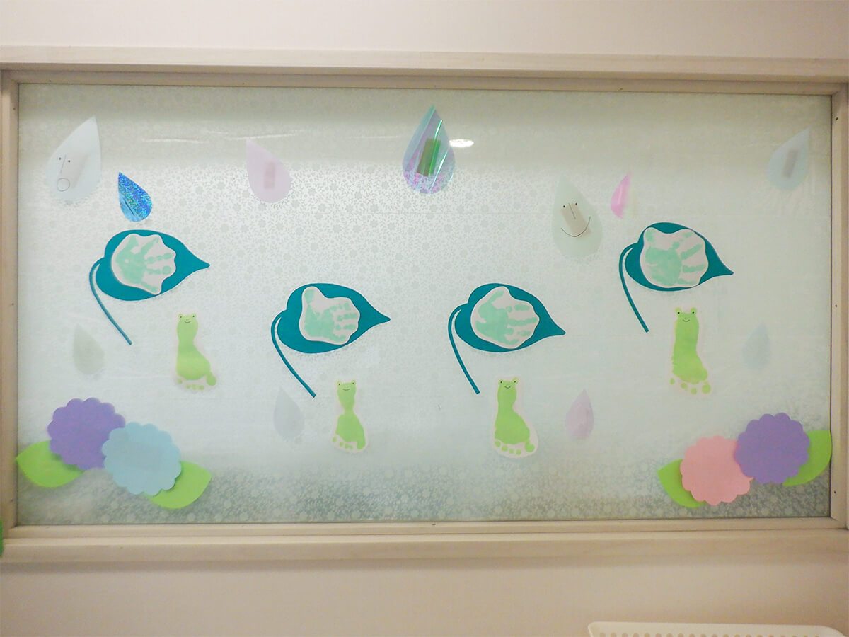 製作では、足型と手形にチャレンジ!絵の具の感触が心地よかったようで、絵の具のついたスポンジをもう1回!と触りに来てやる気満々な皆のおかげでとっても可愛い製作が完成しました✨