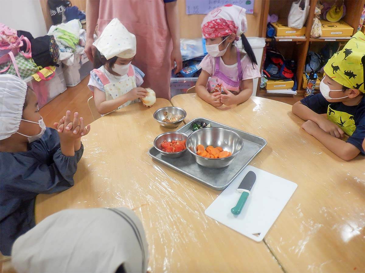 園に戻ると早速クッキング開始です!野菜を切ったり、具を並べたりと盛りだくさんの工程を終えると自分だけのとってもおいしそうなオリジナルピザが完成しました❤