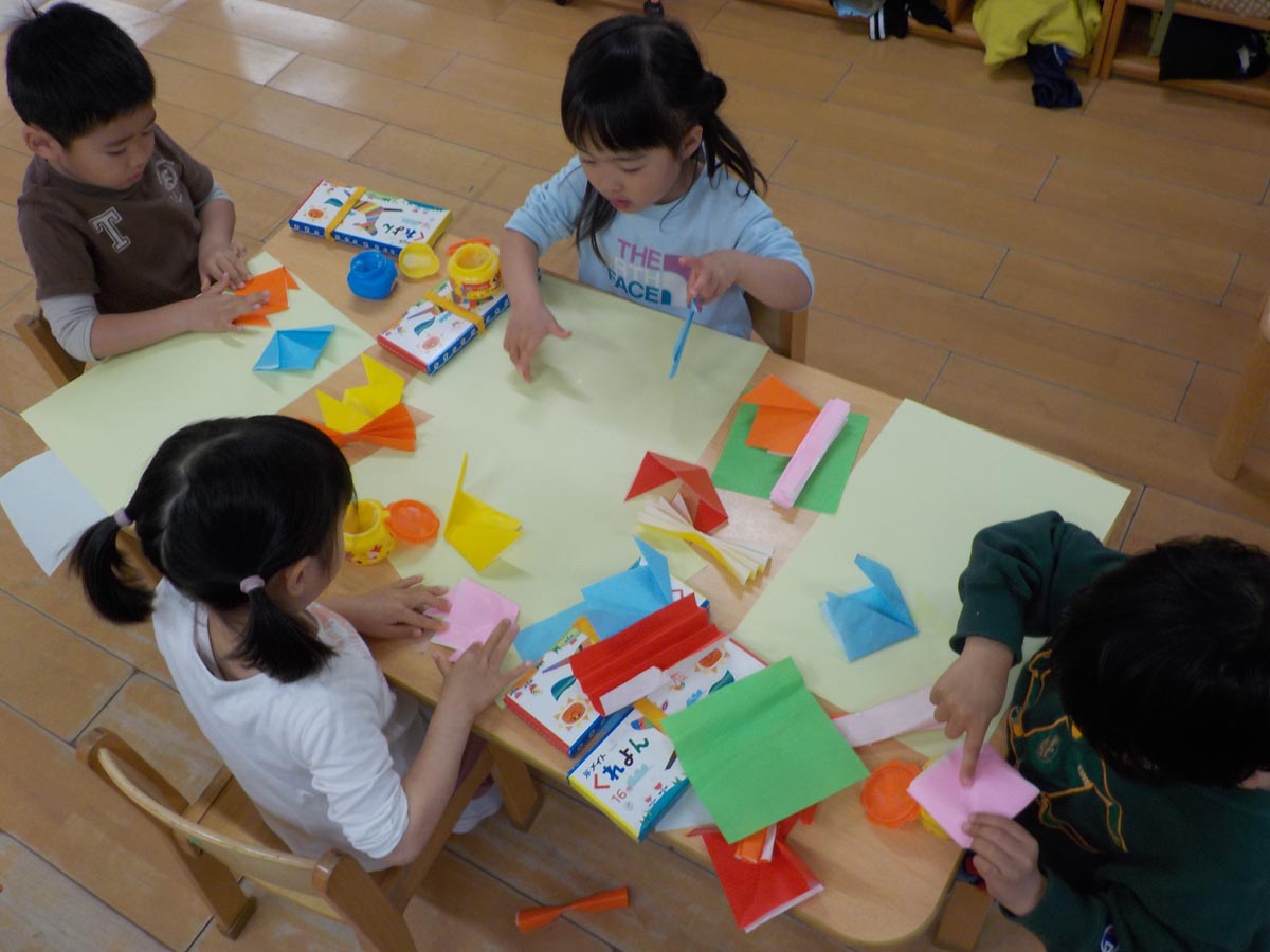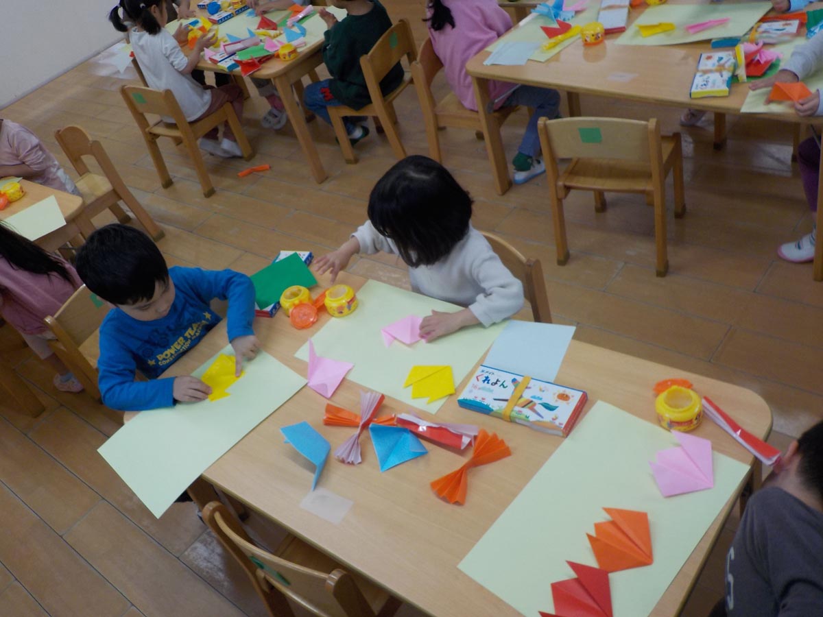 折り紙や糊、セロハンテープを使い、素敵な作品が完成しました!