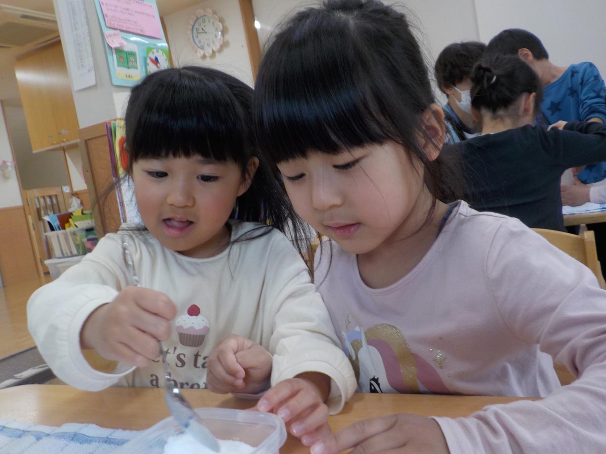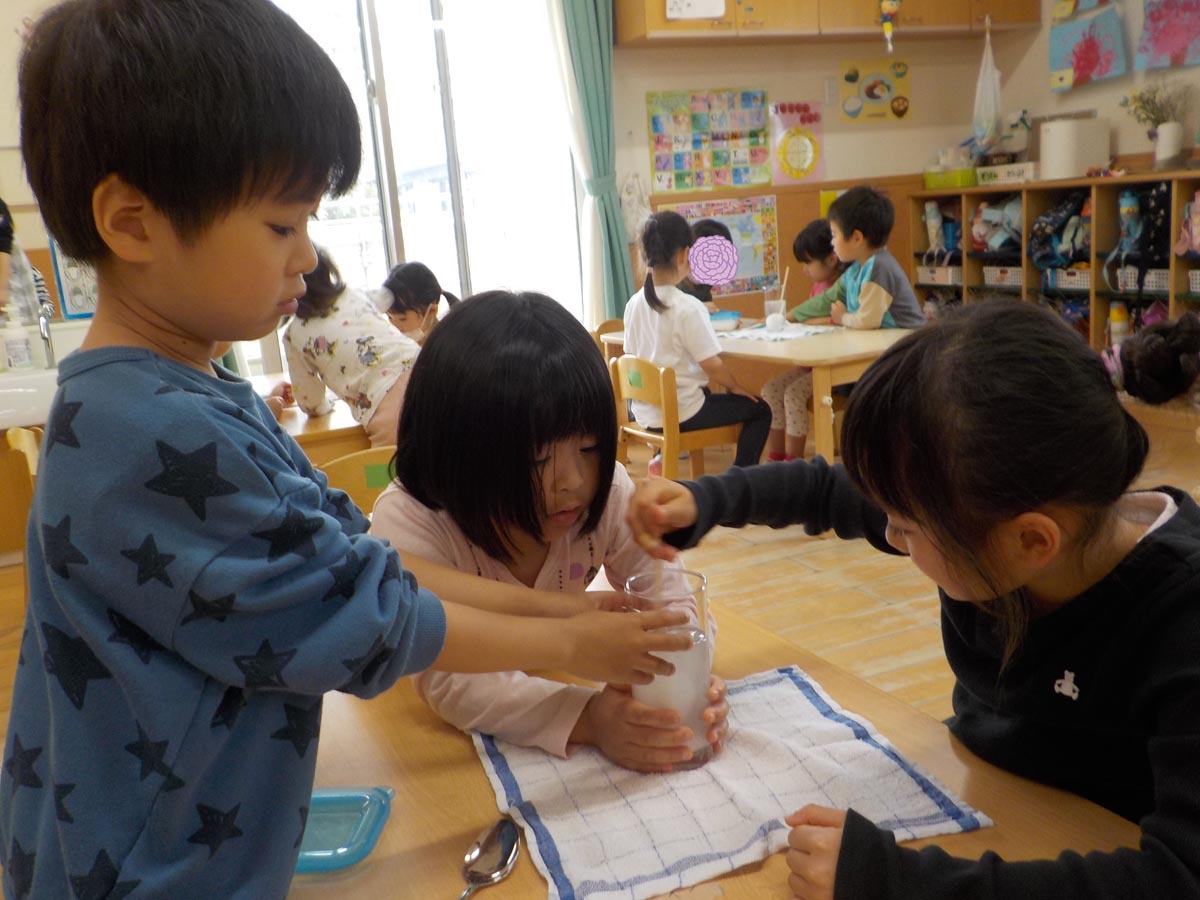 順番に塩を入れたりコップを押さえたりとグループで協力して取り組んでいました!
