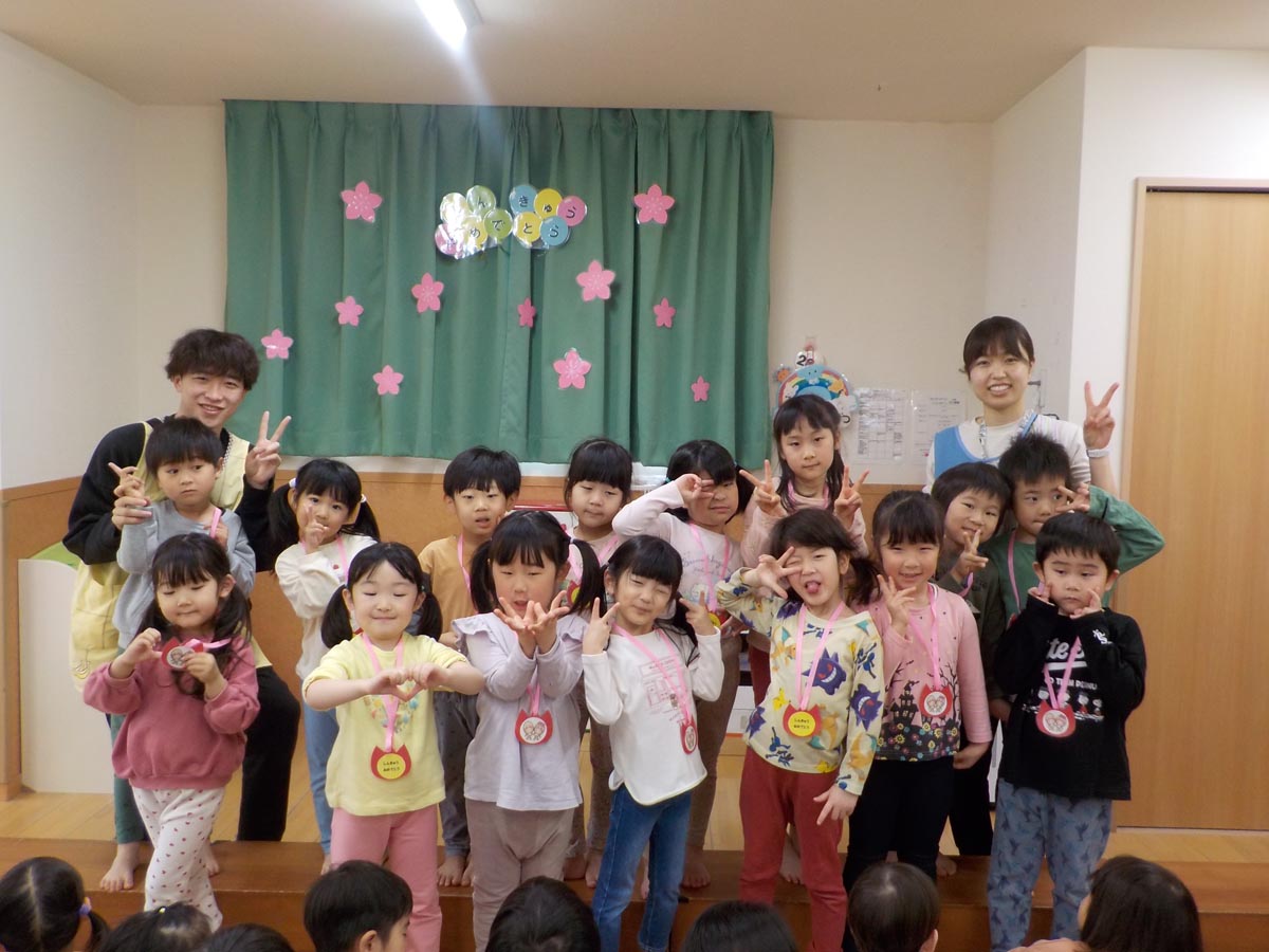 進級会ではメダルを貰ったり、他クラスと一緒にゲームをしたりと楽しんでいる姿が見られました!