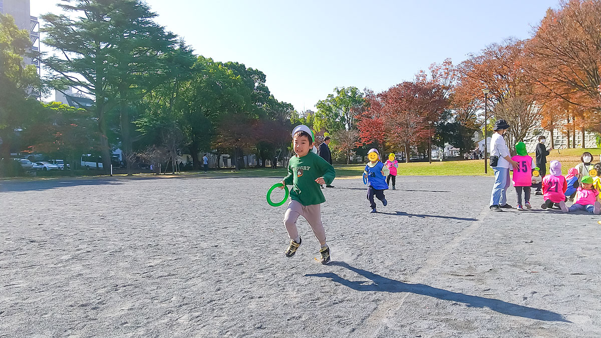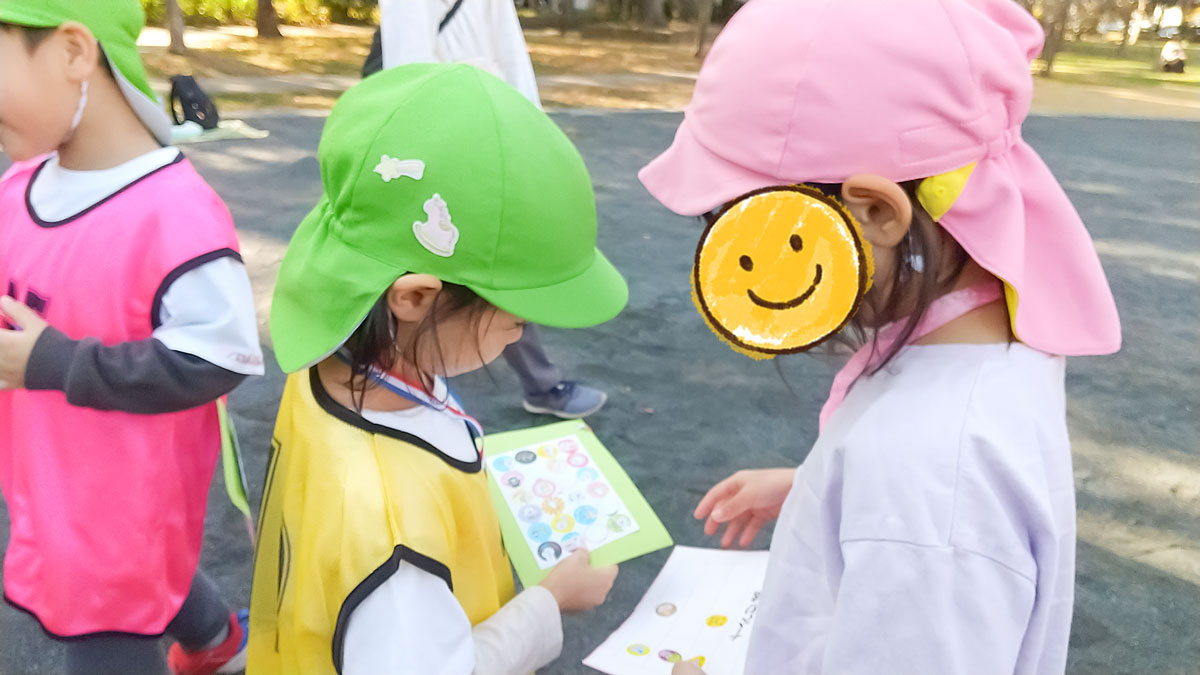 公園に着いてからはオリエンテーリングを行ない、混合グループでフラフープ送り対決スタート! 年上のお友だちが年下のお友だちを助けたり、一人ひとりがどうしたら早く次の人にフラフープを渡せるか考えたりしながら、参加する姿に成長を感じました💕