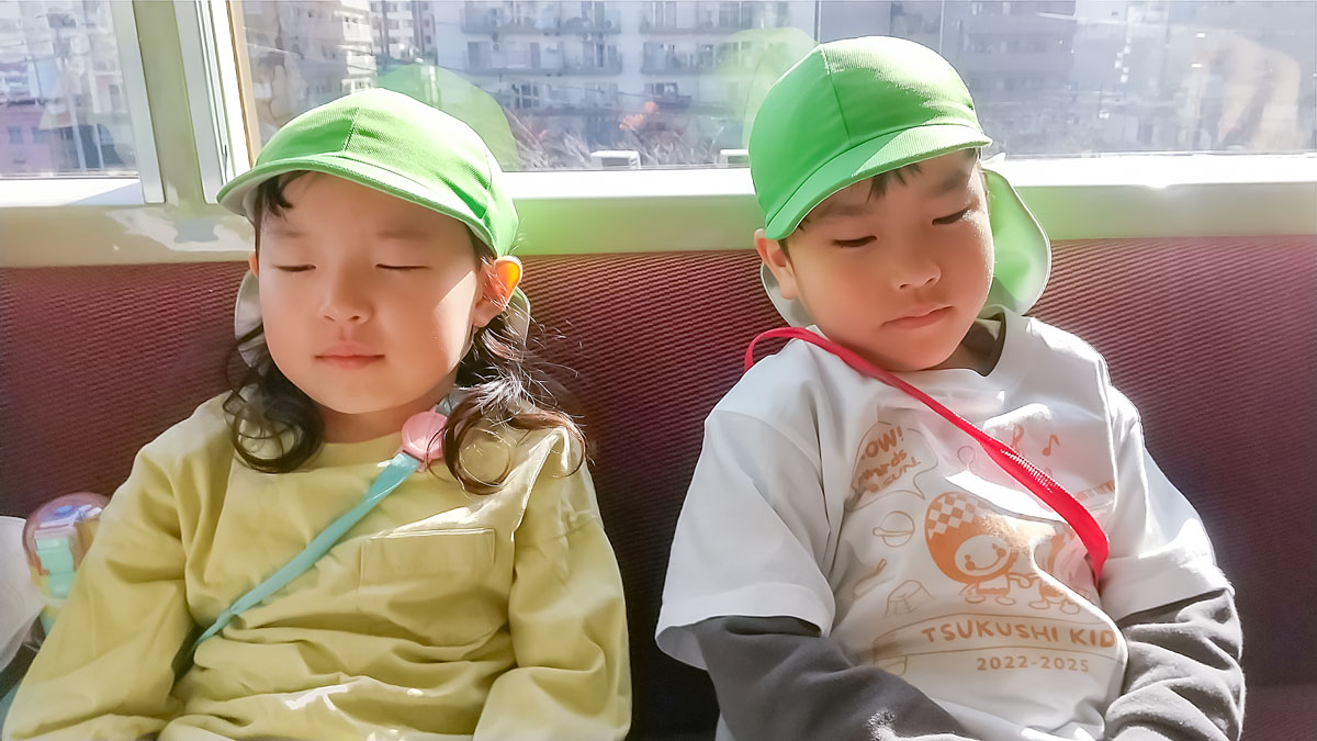 電車に乗るだけで子どもたちはワクワクで、見える景色やすれ違う電車に大興奮でした。