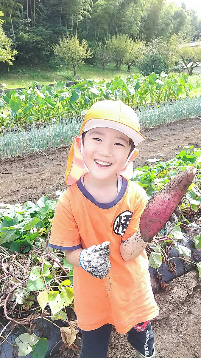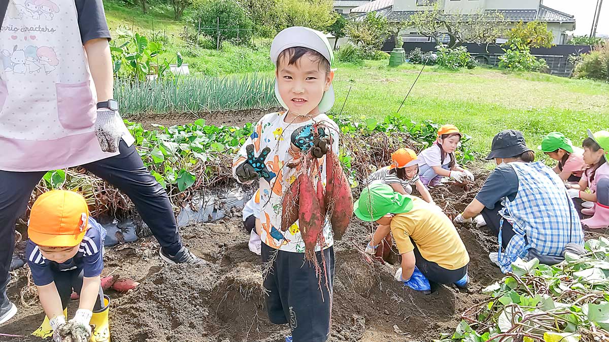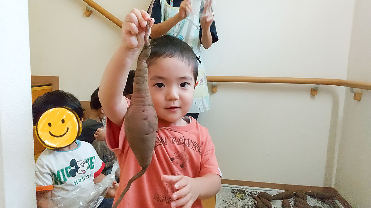 大きなお芋を手に持ち「見てぇー!!」と、満面の笑みで見せてくれました🍠
