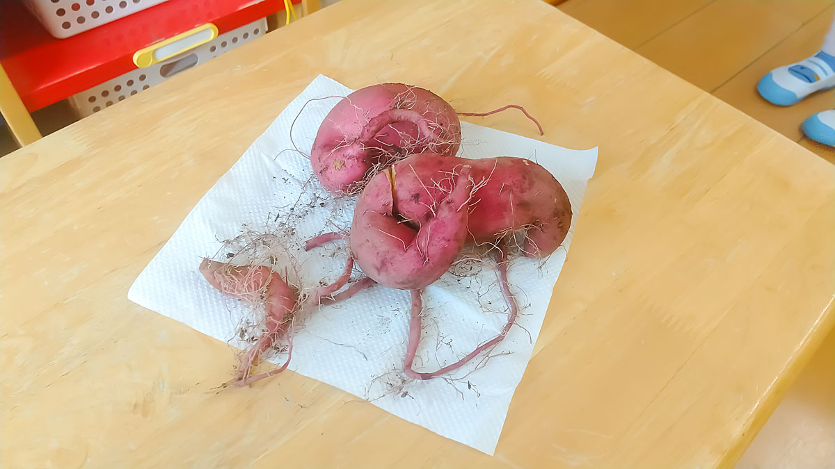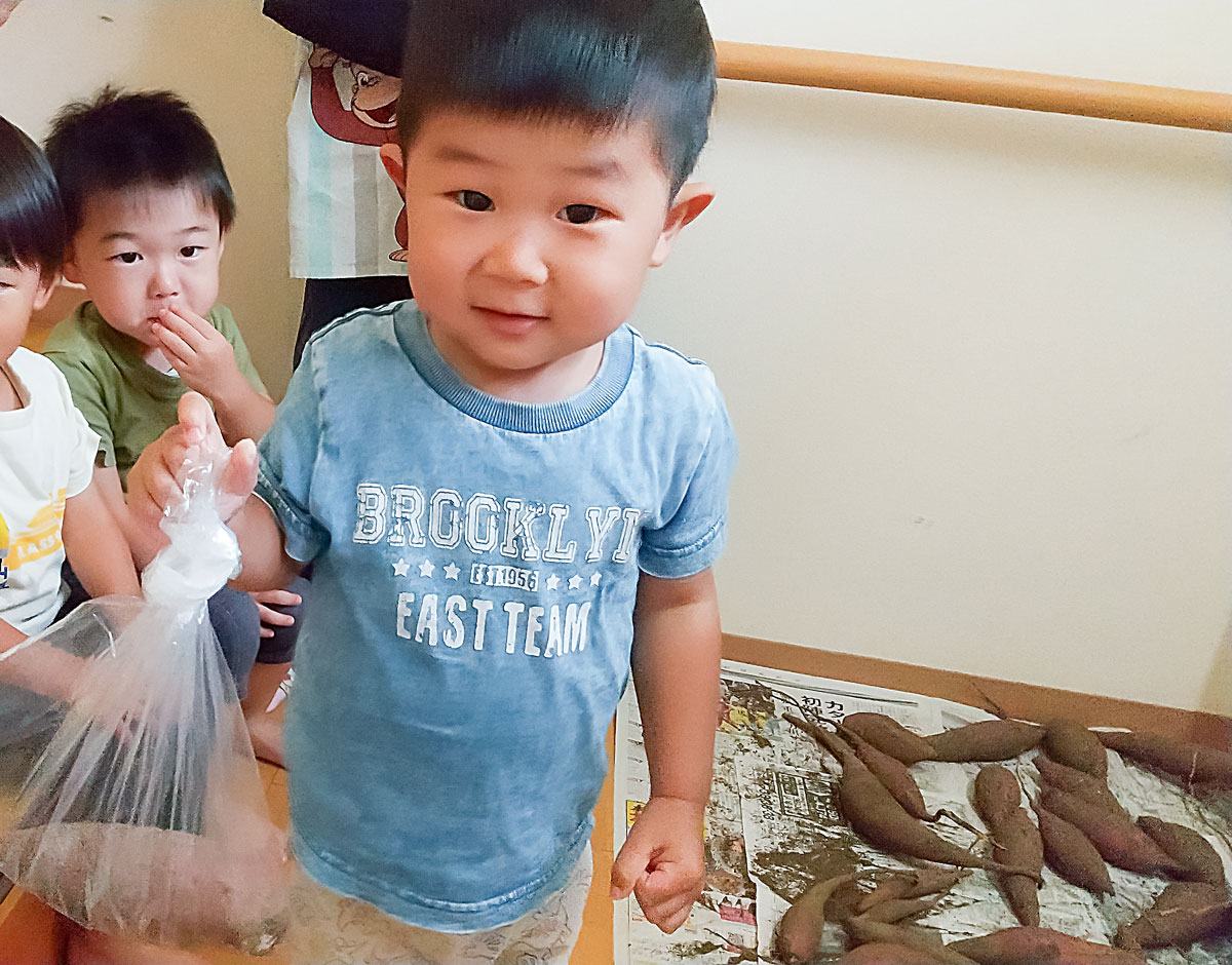 大きいお芋を選ぶお友だちもいれば、細くて小さいお芋を選ぶお友だちもいて好みは様々でしたが、みんなとっても嬉しそうでした😊