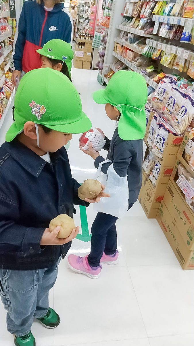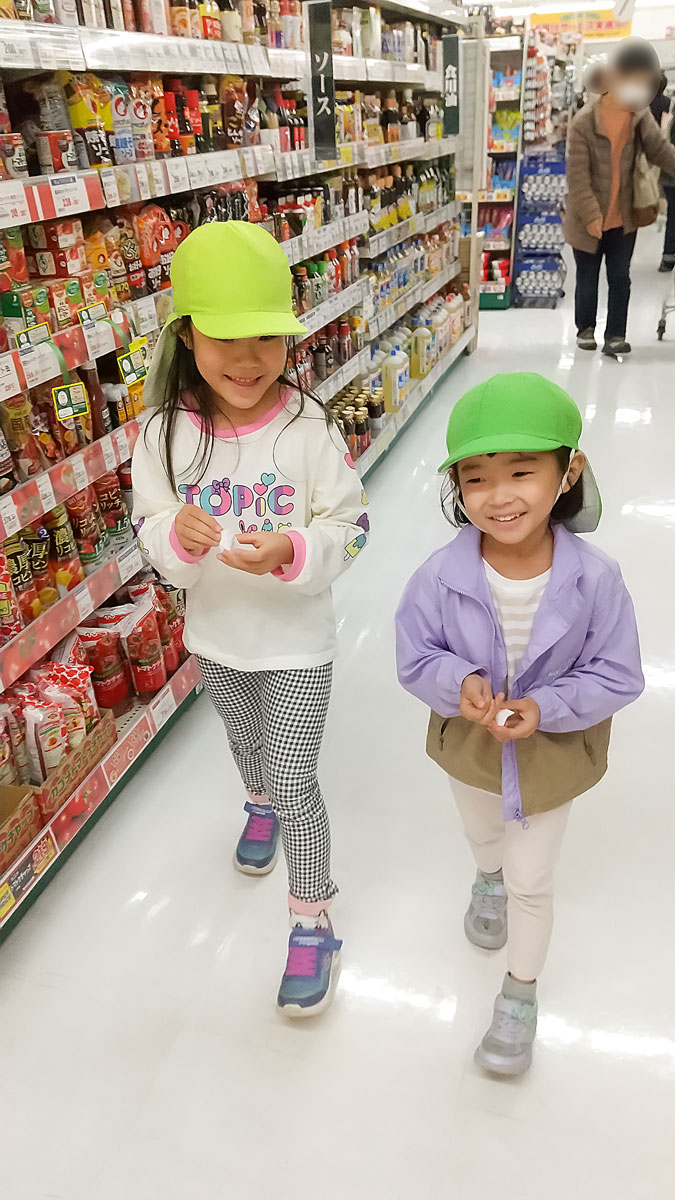「野菜売り場は、どこだろう?!」とお店の中を探し歩き「あった!!」と、目的のものを見つけると嬉しそうに駆け足に。買うものを手に取りレジへ向かうと「おねがいします」と店員さんへお願いし、必要なお金をお財布から取り出したり、お礼を言ったりして商品を受け取りました🛍 元の場所へ戻ると「おかえりー」と、みんなが元気に迎えてくれました☺