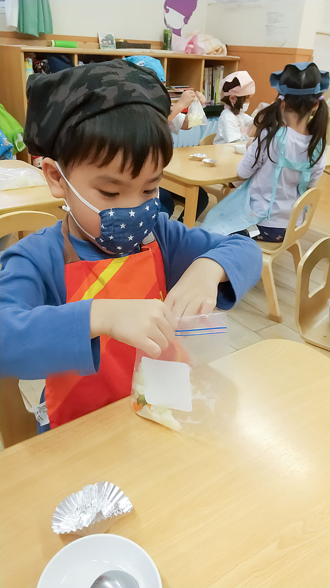 おやつを食べた後は、クッキング!