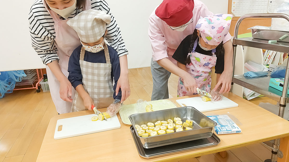 包丁を使うのはドキドキ!ですが、とても真剣な表情で取り組んでいましたよ✨