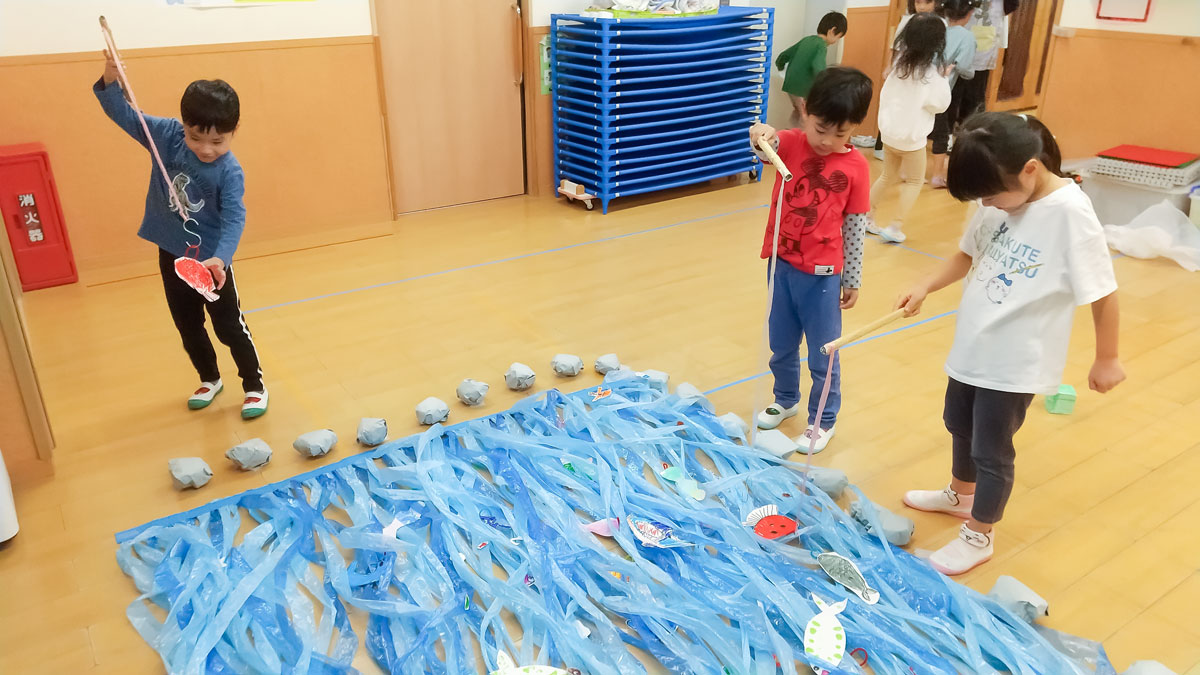 グループごとに的当てや魚釣り、なぞなぞクイズや探検に出かけ、協力してすべての材料を集めました⭐