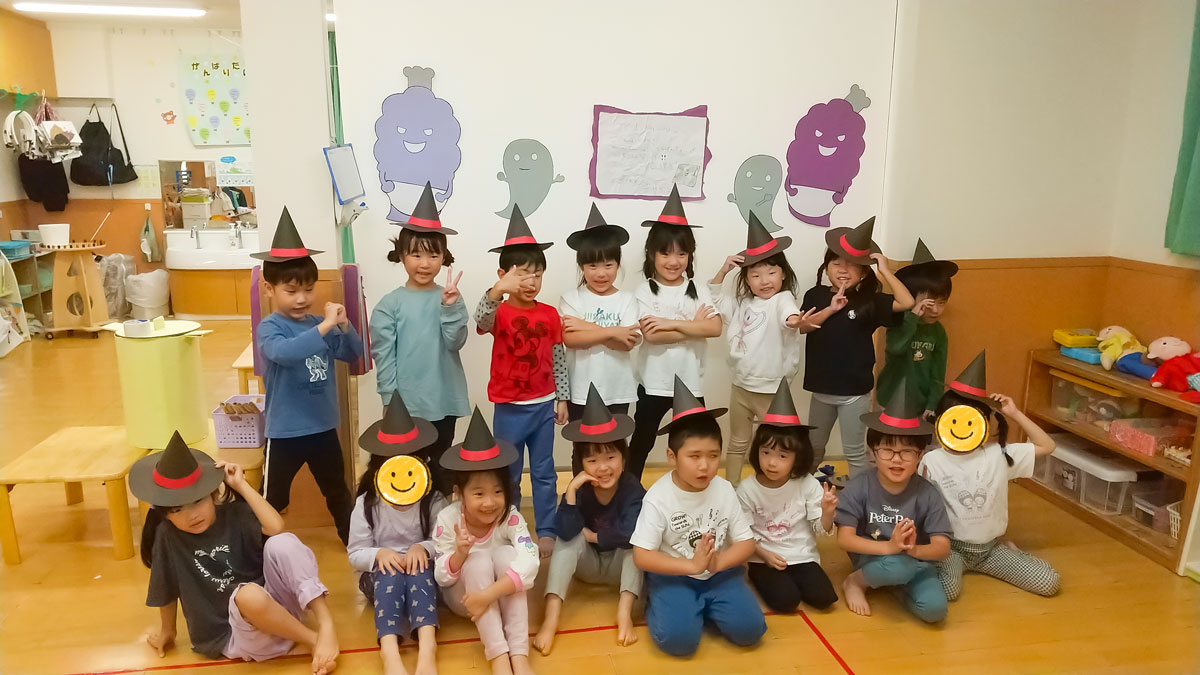 10月のある日、子どもたちが登園すると、こぐま組の部屋の壁におばけが登場!
