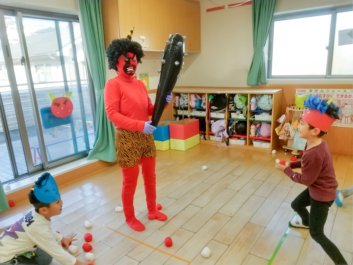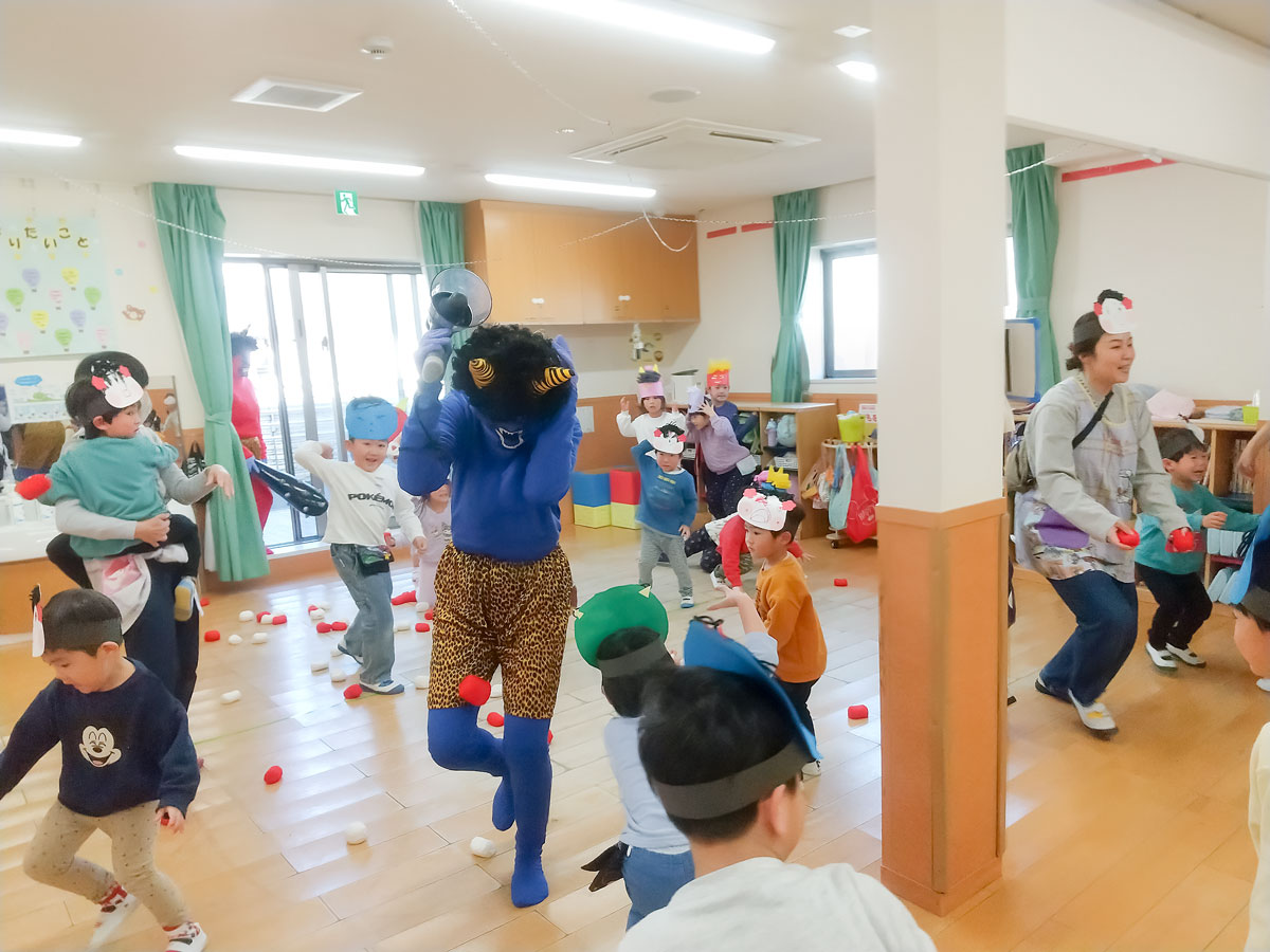 「豆まきの歌」を歌っていると…鬼が登場👹