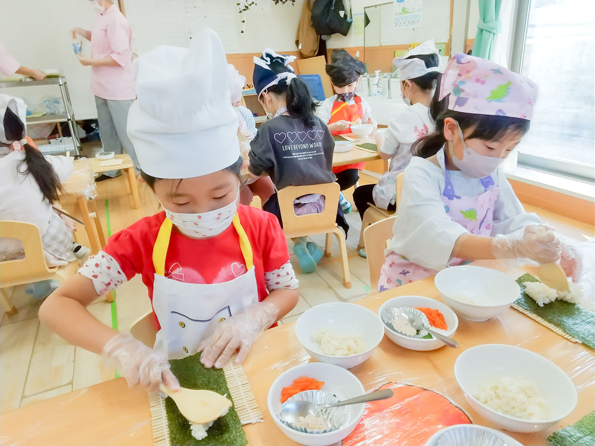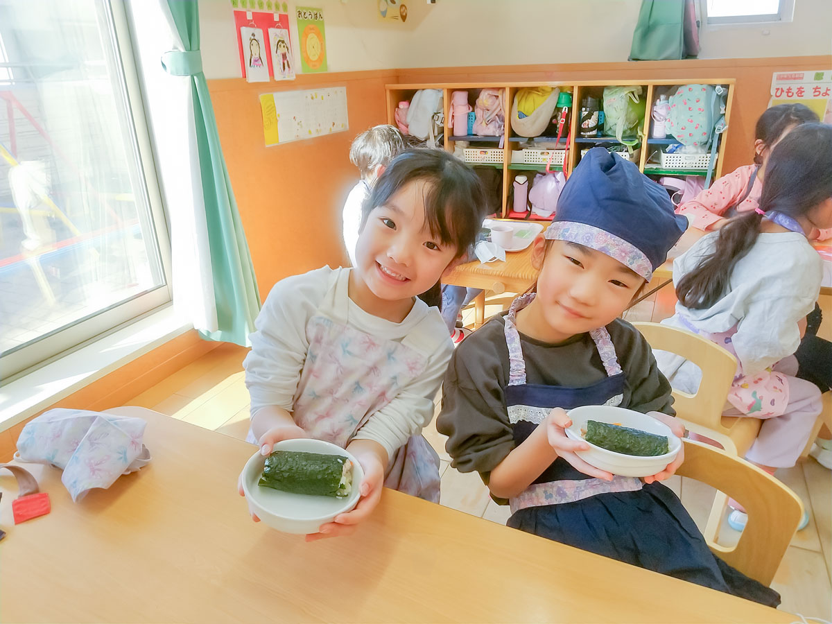 そして!! こぐま組はおやつの恵方巻づくりをしました!