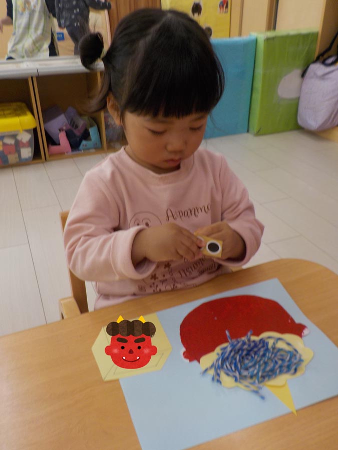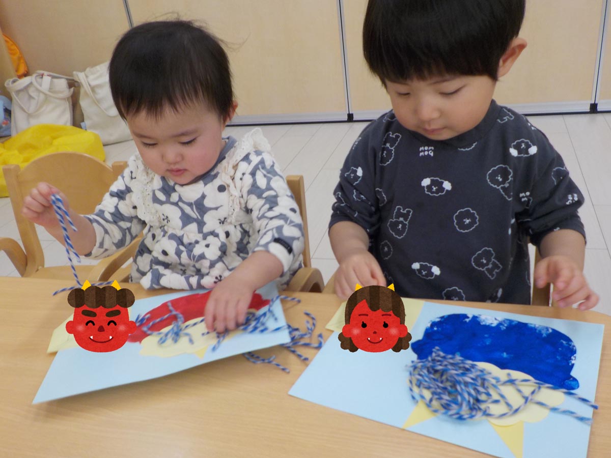 可愛い赤鬼と青鬼が完成👹「鬼は外~福はうち~♪」と歌いながら節分を楽しみました✨