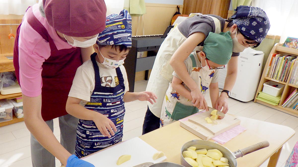 楽しみにしていたクッキング!前日に近くのスーパーまで買い出しに行った材料でゼリーやカレー作りに挑戦しました! 初めての包丁を使いドキドキな子ども達ではありましたが、慎重にじゃがいもを切っていましたよ🥔