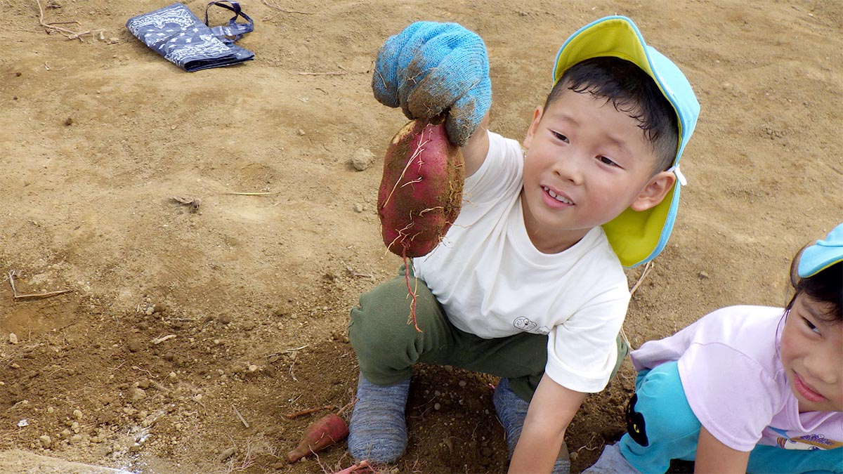 「引っ張るんじゃなくて、周りをそーっと掘るんだよ!」と畑の方に教えて頂いた掘り方をお友だちと確認し合いながら掘り進めます✨