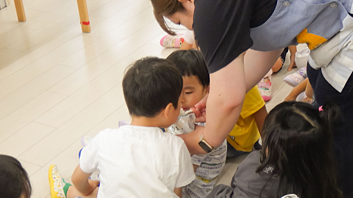 また、非常食であるアルファ米の作り方も知りました。「炊飯器がなくても作れるんだね!!」と驚いた表情のお友だちもいましたよ。
