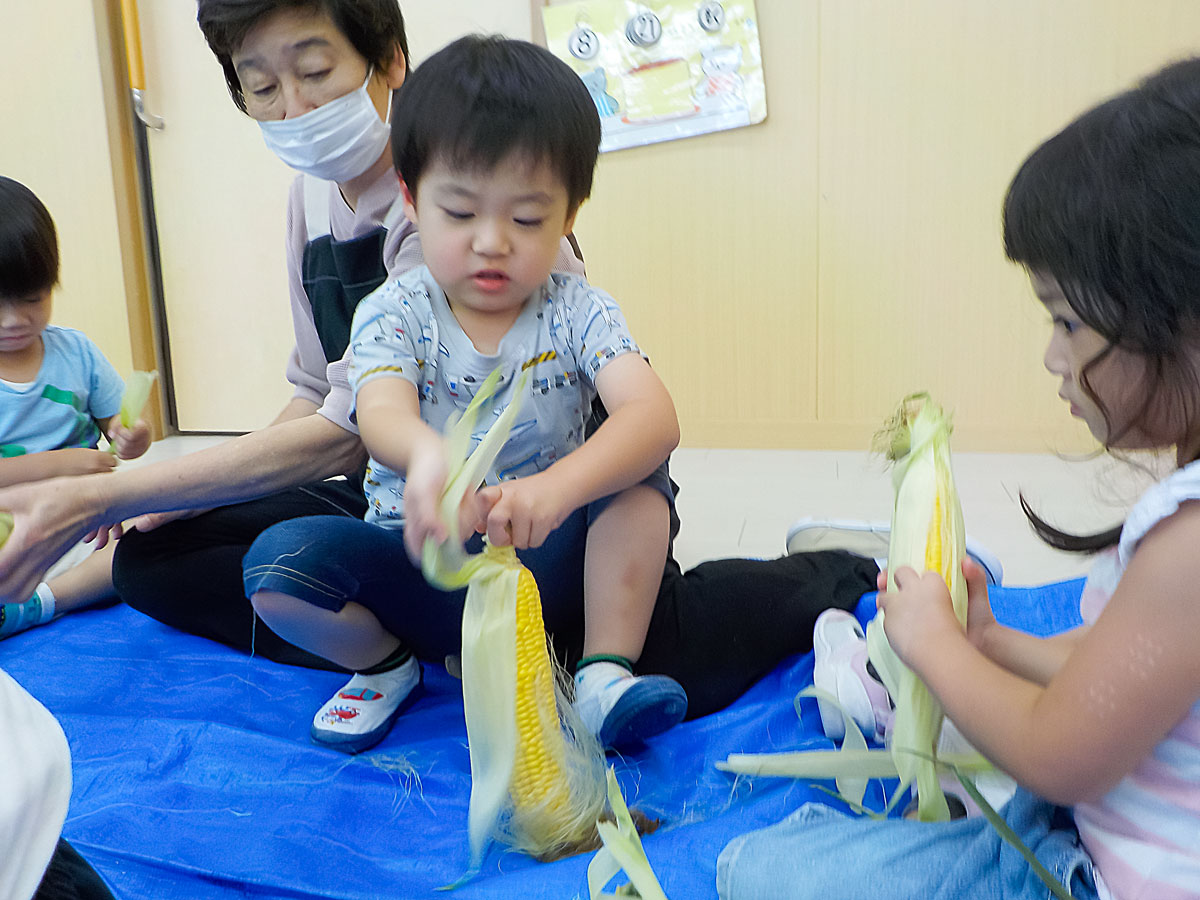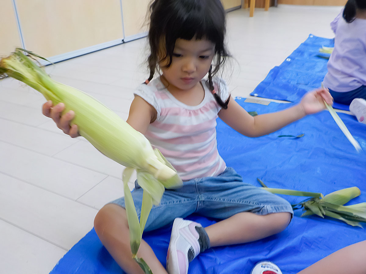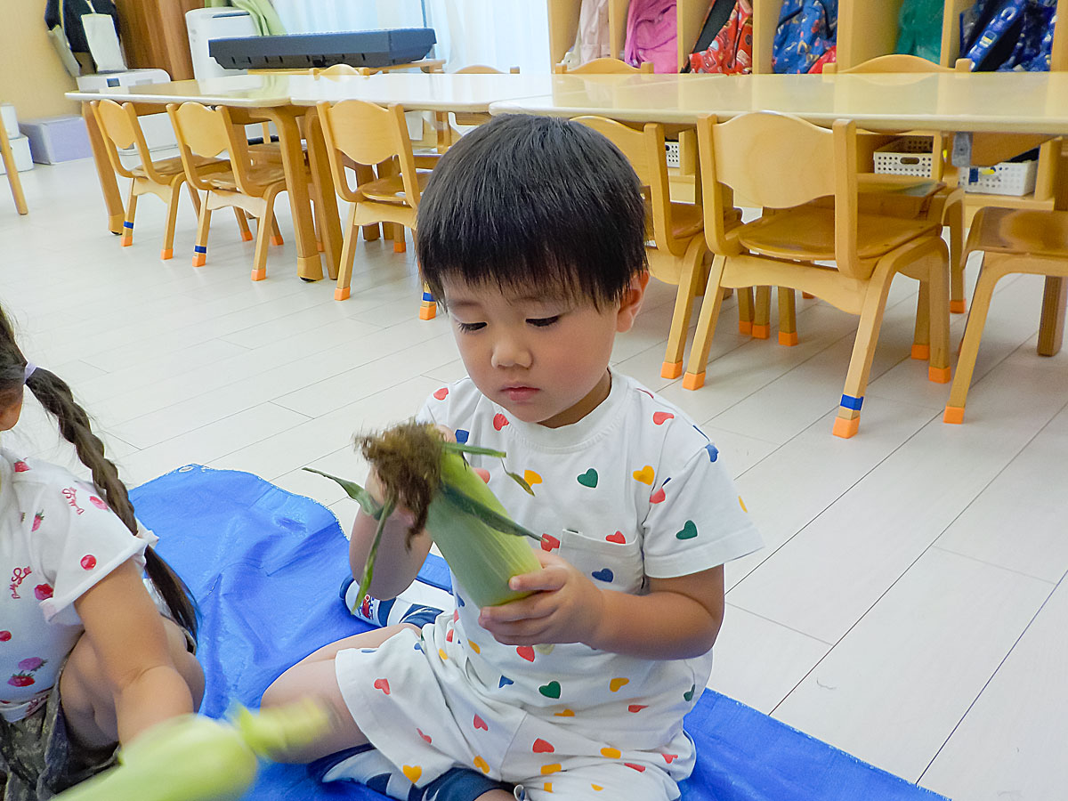 野菜が苦手なお友だちも、頑張って皮をむいたトウモロコシには愛着がわいた様子で食べていました!