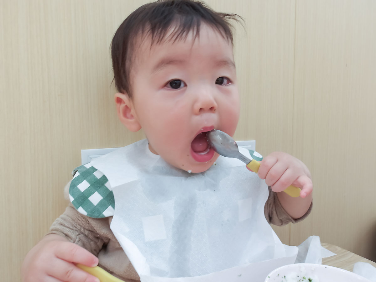 みんなで給食の歌をうたうと、手拍子をして「いただきます」をしています♪