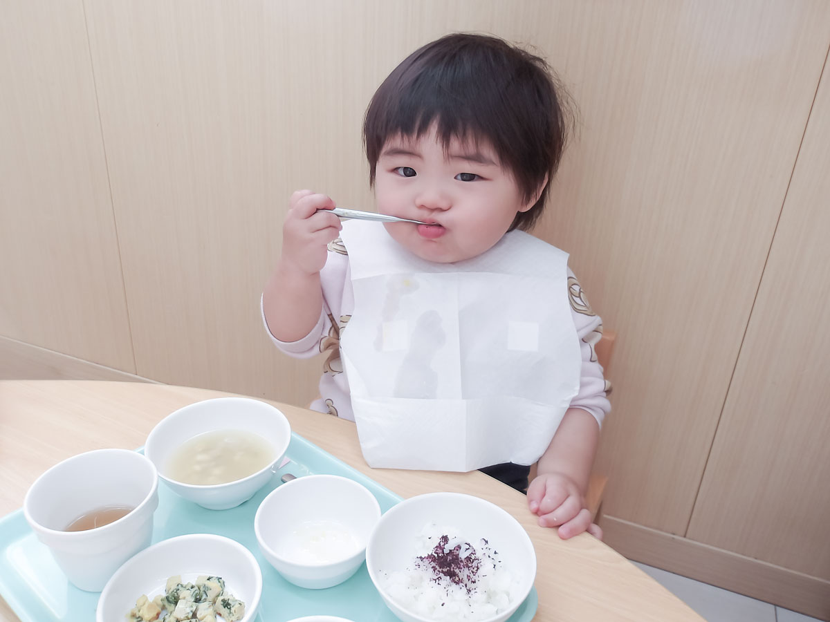 給食の時間が近づくと、今日は何かな?と、のぞくかわいい姿が見られます💕