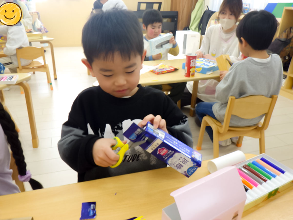 恥ずかしがりながらも自慢の作品を発表し、また廃材遊びをしたい!と、やる気満々でした✨