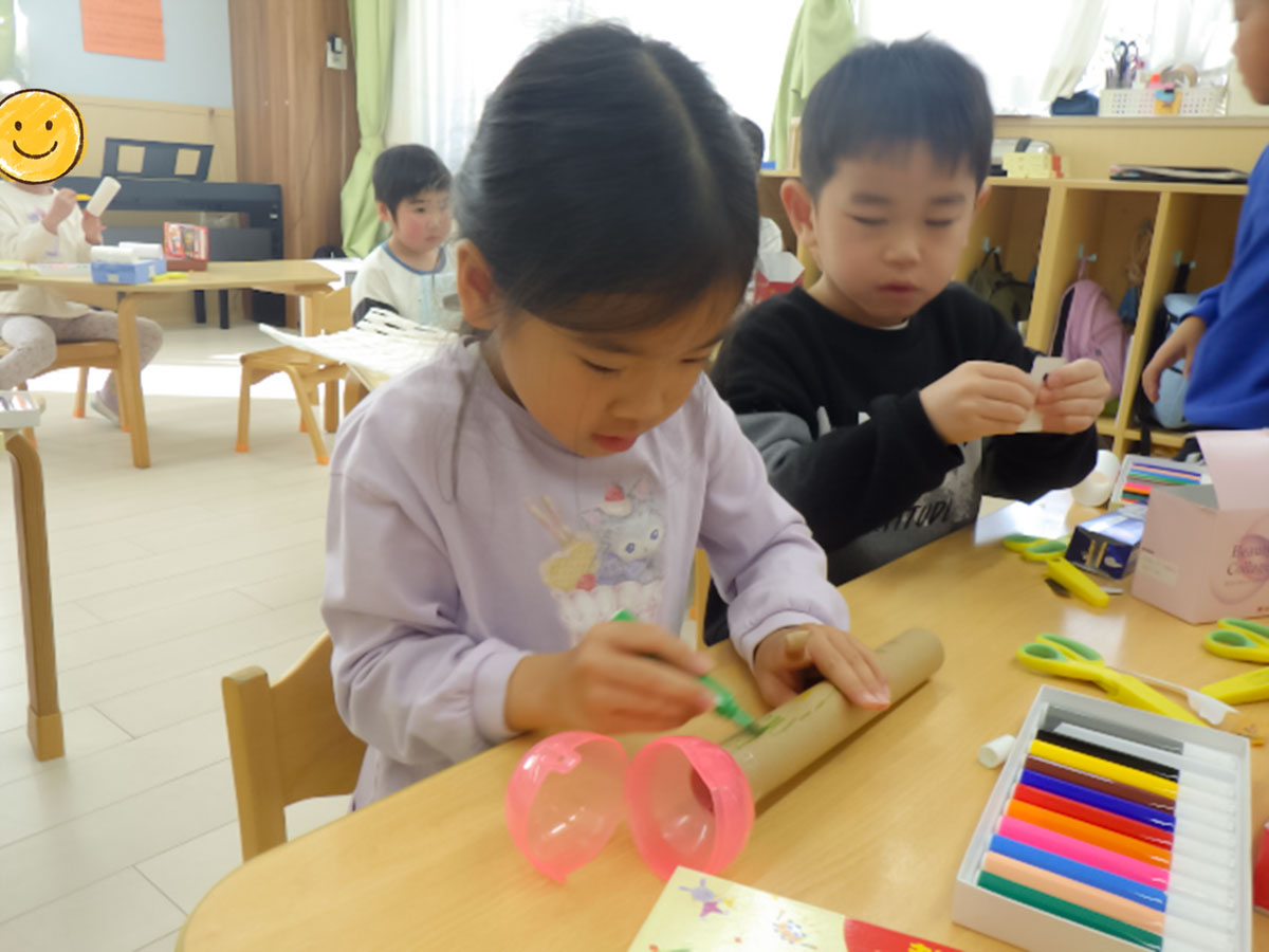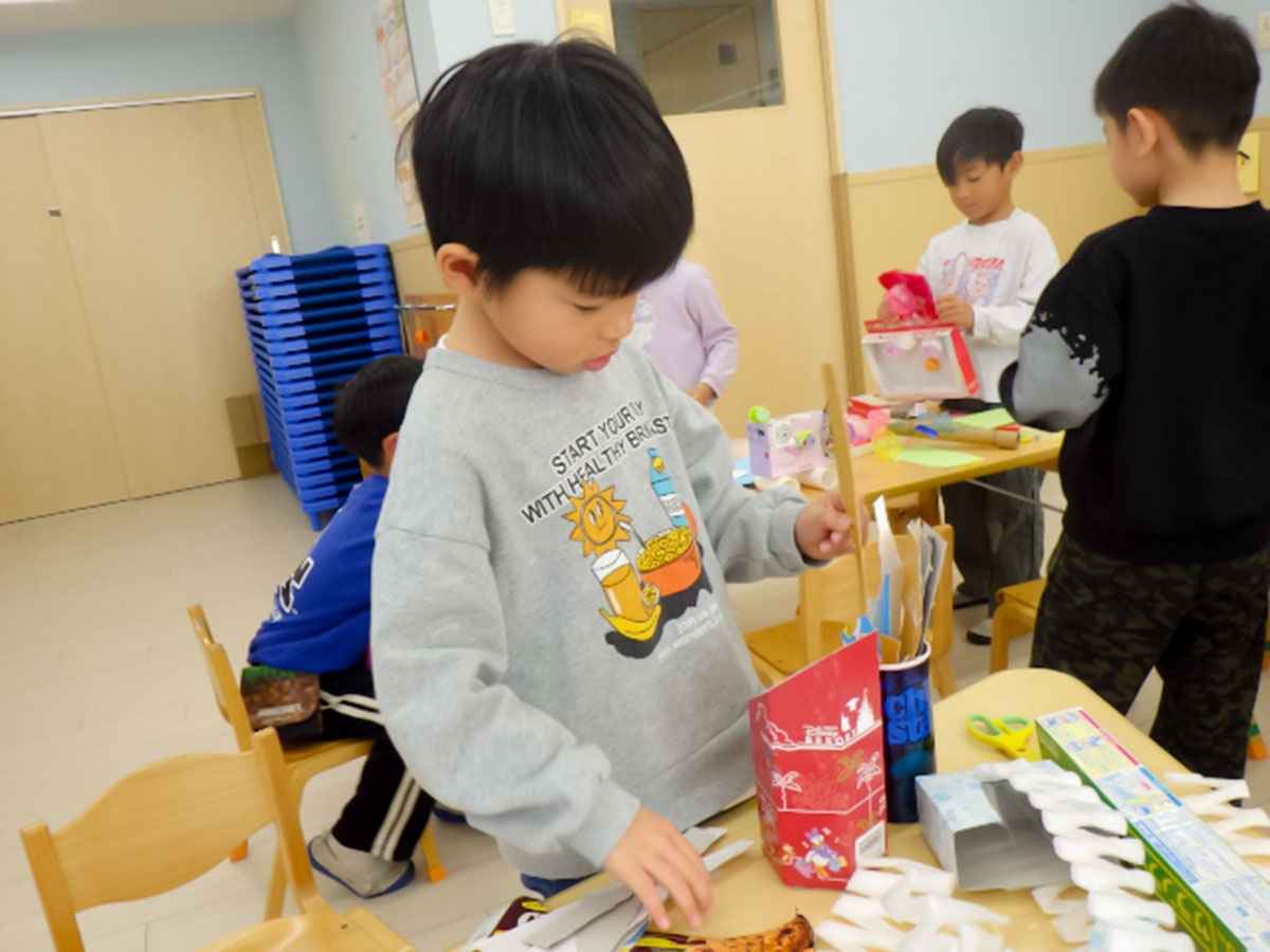 完成した作品を友だち同士で見せ合い、楽しく遊ぶ姿が見られました!