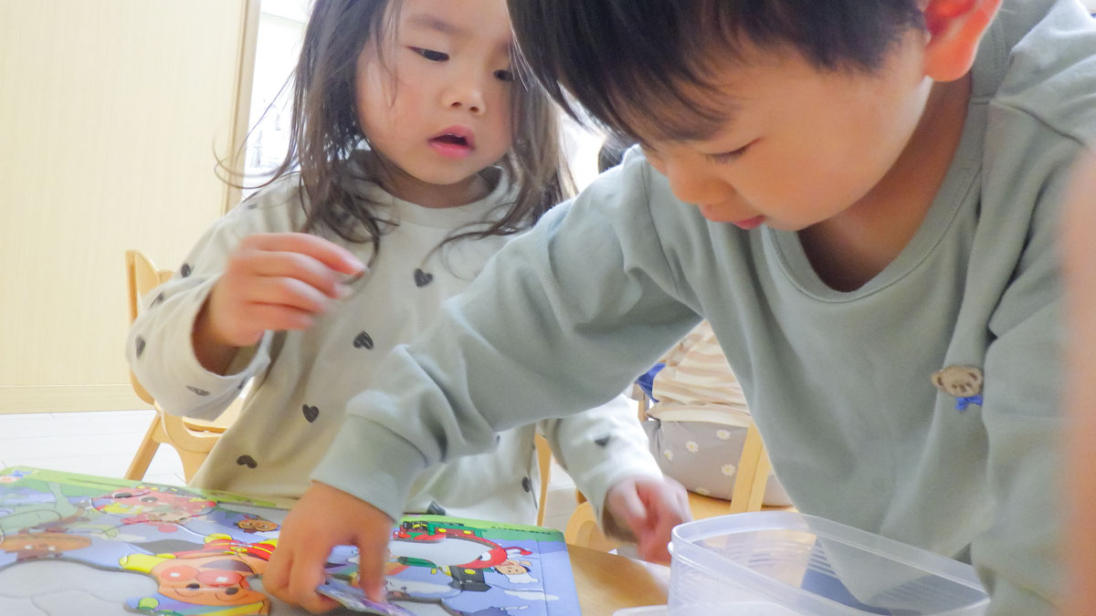 会話をしながら協力してパズルを完成させている様子も見られ、